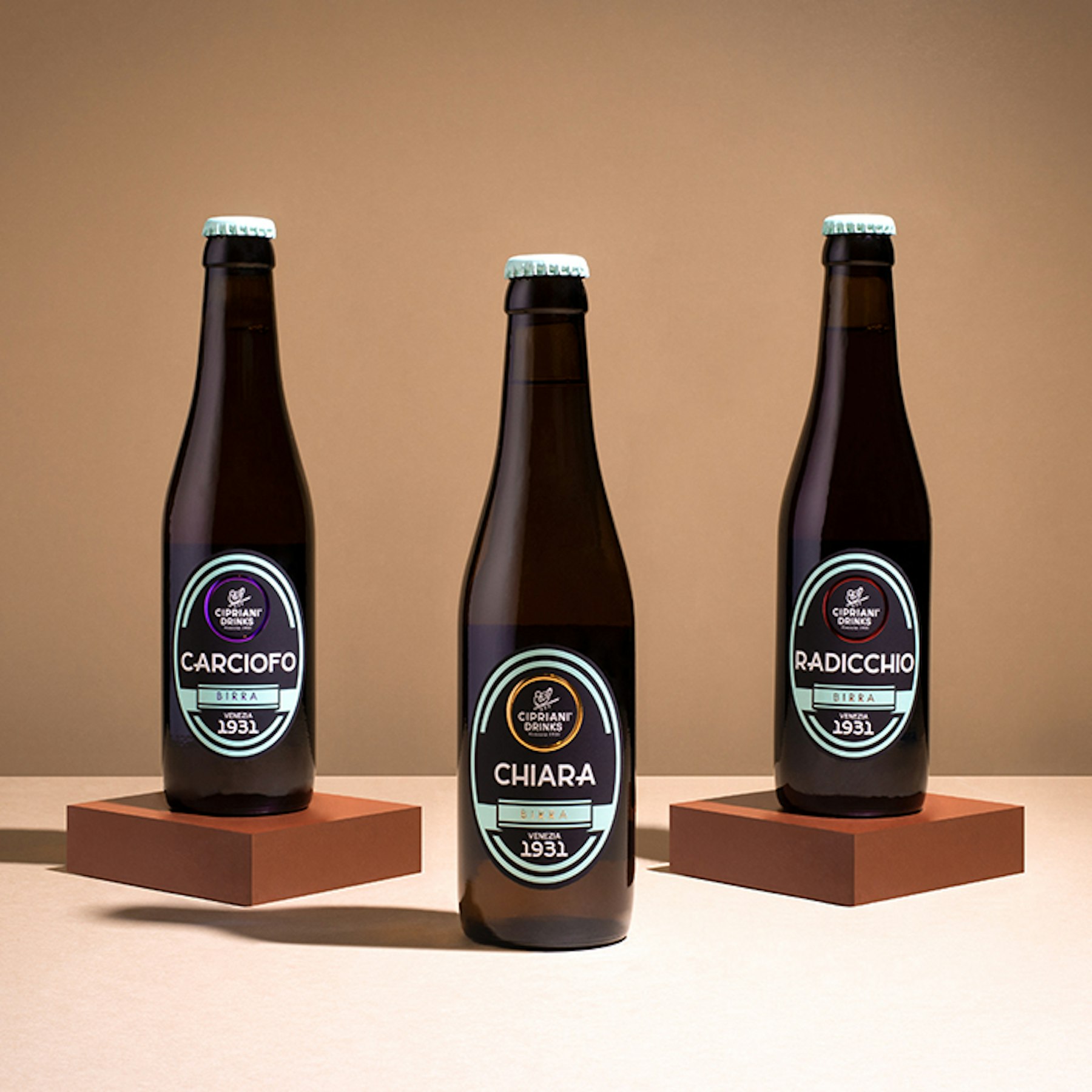La Birra Cipriani al Vero Carciofo propone il gusto raffinato e deciso del carciofo violetto di Sant'Antonio di Torcello. Un prodotto che racchiude l'essenza della tradizione dell'isola di proprietà della famiglia Cipriani, dove coltivano e gestiscono personalmente la lavorazione di questa eccellenza lagunare. Il Carciofo Violetto è di medie dimensioni e forma affusolata, carnoso e caratterizzato dalle foglie di colore viola intenso. Il suo sapore, anch'esso amarognolo, è esaltato dalla salsedine dei terreni in cui viene coltivato.